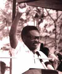 1965 was also the year Savimbi first visited the USA, where he stayed for a month and came back with military plans and support. In March 1966, Savimbi founded UNITA (União Nacional para a Independência Total de Angola), based on his own political constituency which was overwhelmingly dominated by members of the Ovimbundu tribe, located on the angolan central plateau. UNITA has only three small armed actions against the portuguese army in its curriculum prior to 1974. In fact, Savimbi has had lots of very warm correspondence with the colonialist authorities, culminating in a formal peace signed with them in 1971. From then on UNITA has functioned as a shield against the incursions of the MPLA from the East. This was first denounced by Aquino Bragança in 1974 and is now a well documented and clearly established historical fact.